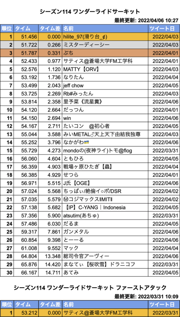 シーズン114 ワンダーライドサーキット