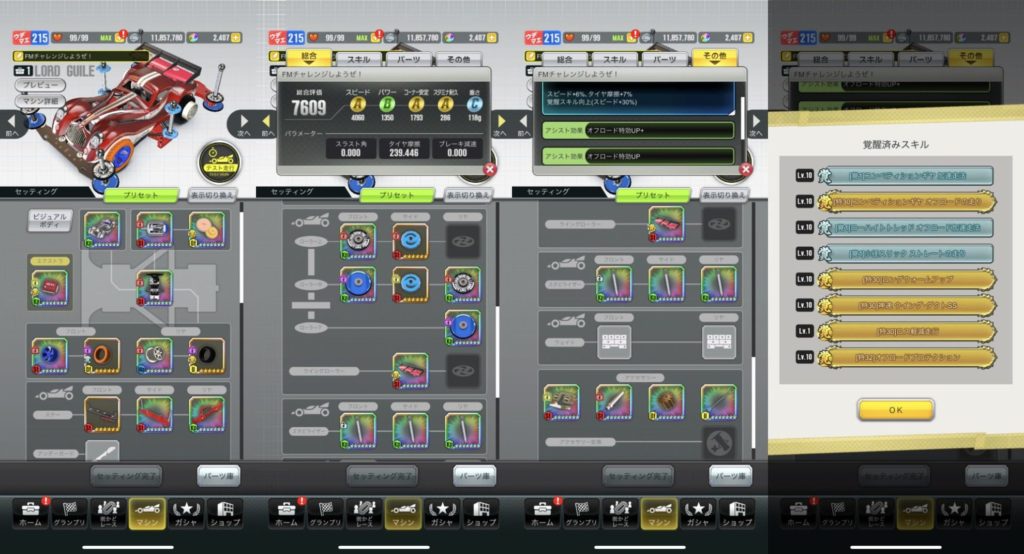 ちなみに私のセッティングはこのような感じで走っておりました。今後のためにクスコでライトニングアタック作る必要ありそうですね・・・。